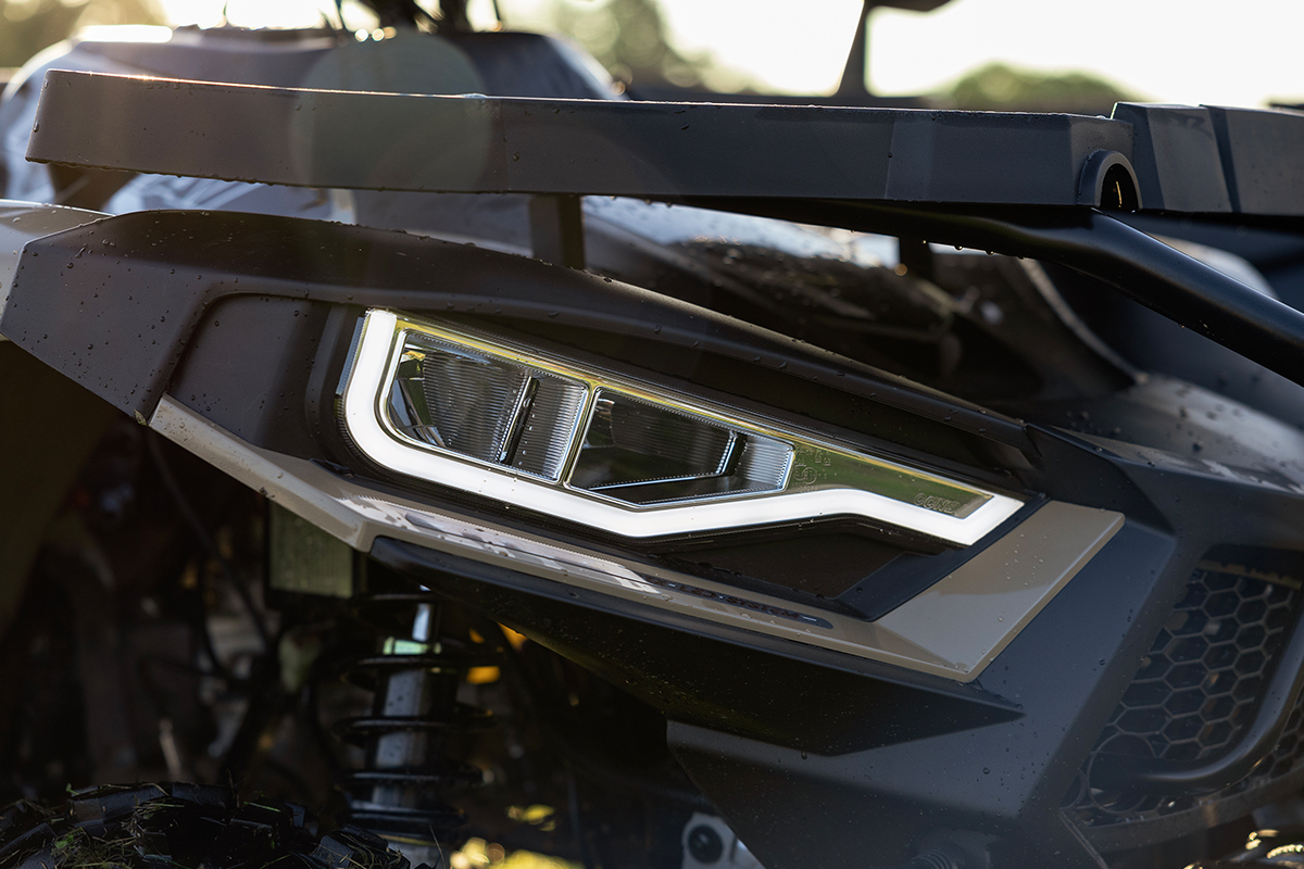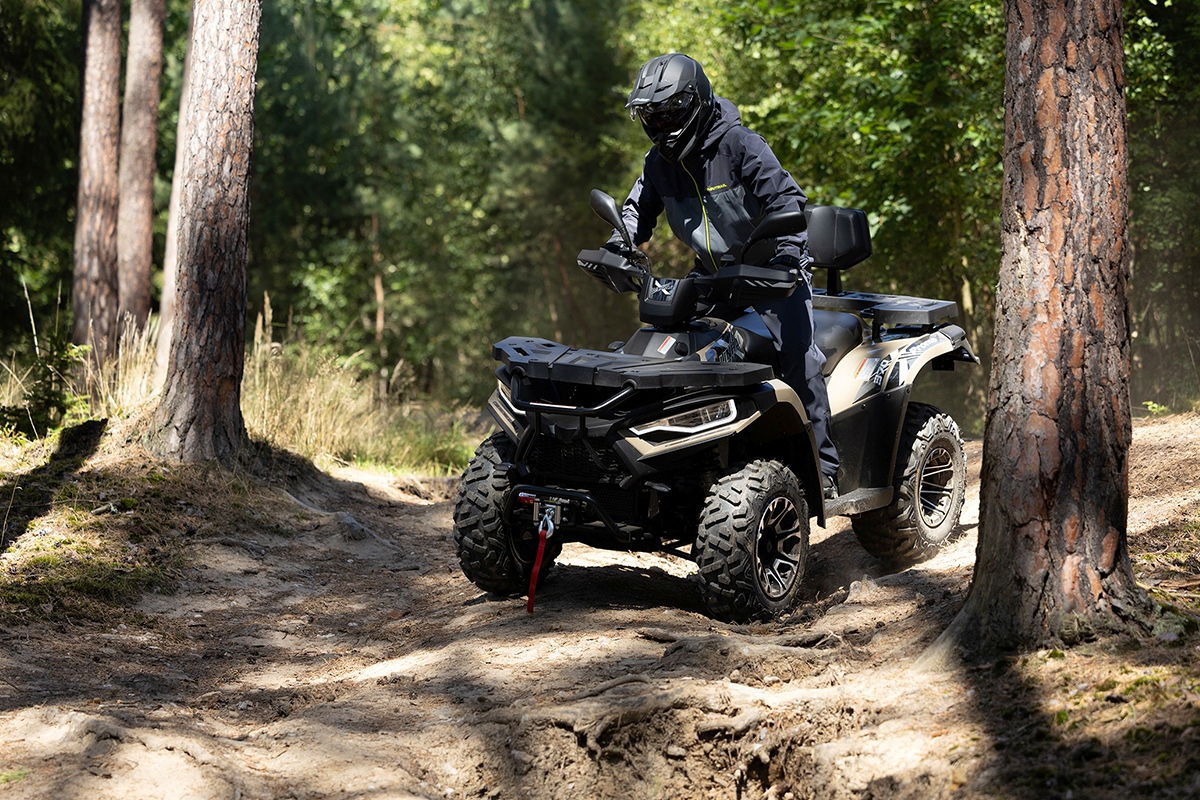 Cârlig de remorcare omologat, troliu electric de 1360 kg cu telecomandă, apărători pentru mâini, bară de protecție față/spate, suporturi pentru bagaje față/spate, scaun cu spătar pentru pasager, priză tip brichetă în consolă, faruri LED-Matrix