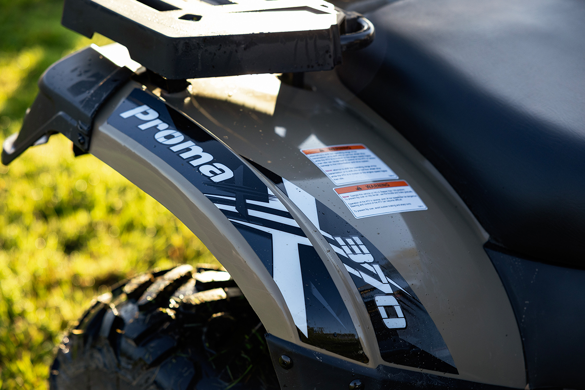 Datorită noilor faruri LED-Matrix și barelor masive de protecție, quad-ul utilitar are un aspect mai agresiv, în timp ce display-ul LCD multifuncțional oferă informații utile, precum kilometrajul, nivelul de combustibil, temperatura lichidului de răcire sau orele de funcționare a motorului. Toate acestea, alături de prețul accesibil, fac din Linhai 370 ProMax o alegere excelentă.