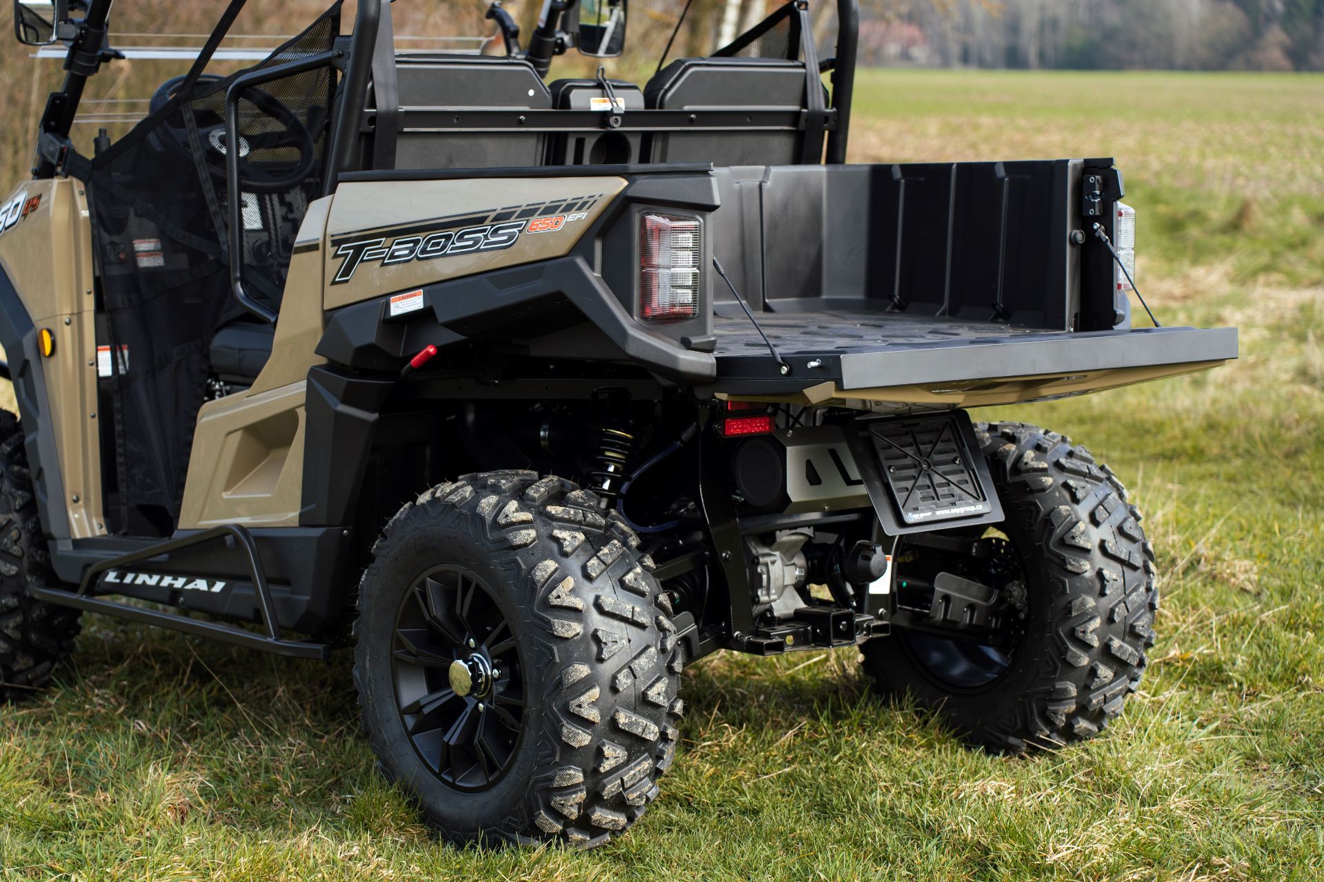 Noul UTV Linhai T-Boss 650 EPS este partenerul ideal pentru muncă în agricultură, silvicultură, construcții, parcuri, grădinărit, terenuri sportive sau pentru aprovizionarea hotelurilor montane. Designul modern Promax, cu faruri LED Matrix și accente sportive, captează atenția încă de la prima vedere.