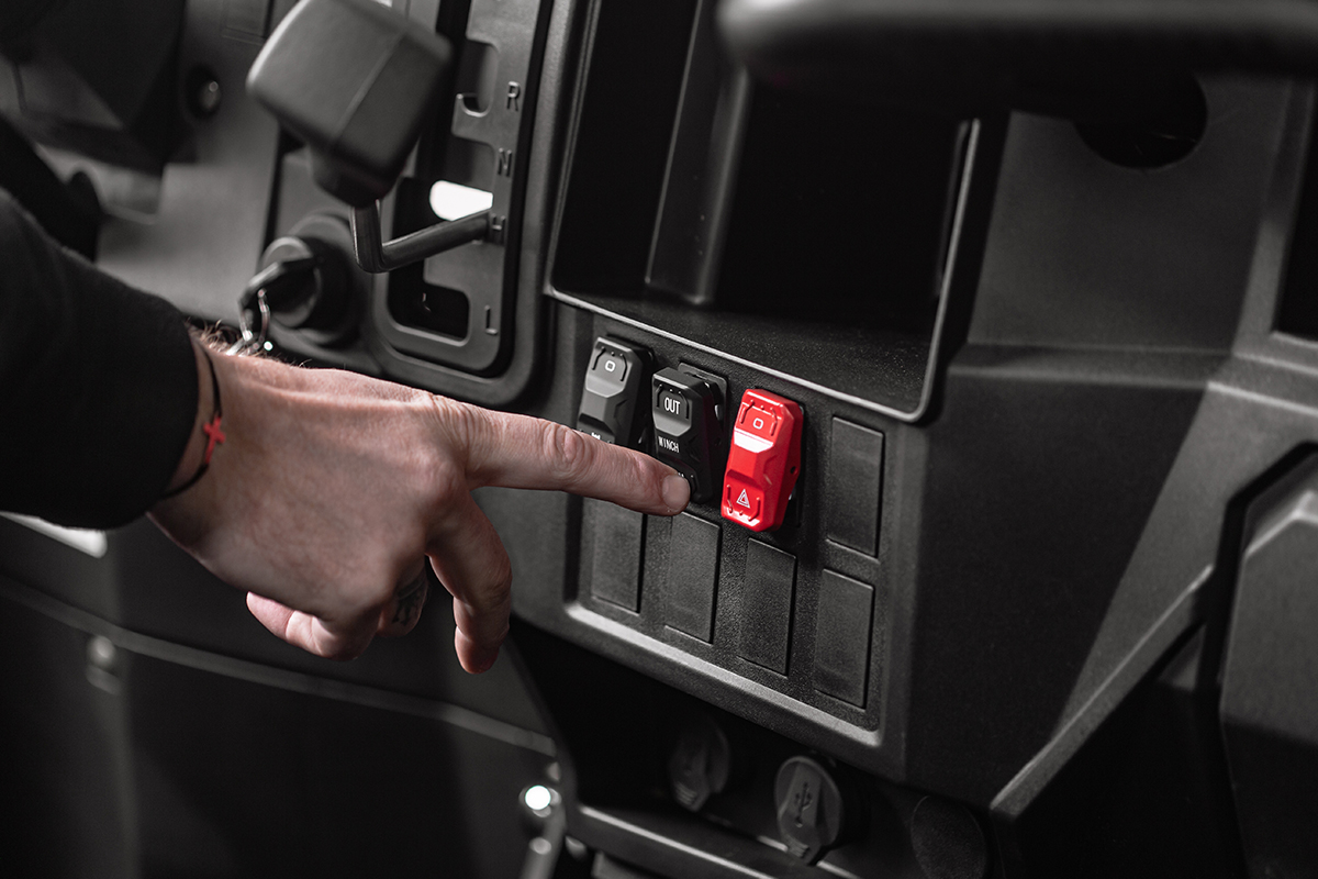 Troliul cu o capacitate de tracțiune de 1360 kg, echipat cu o șufă sintetică. Sistem dublu de control, din cabină sau din telecomandă