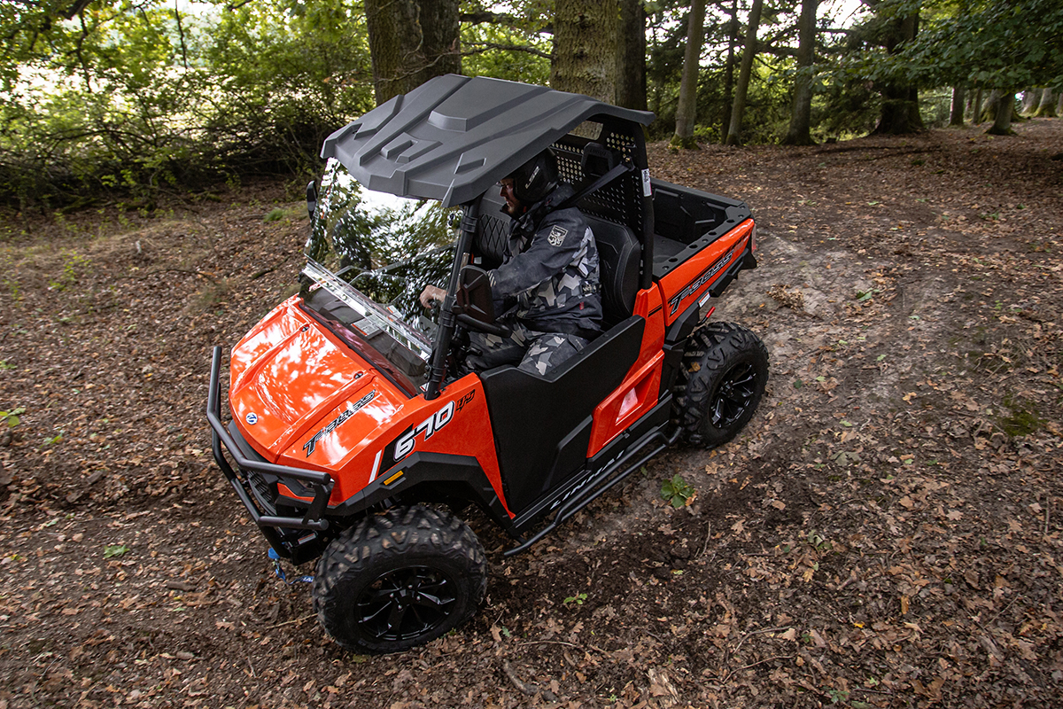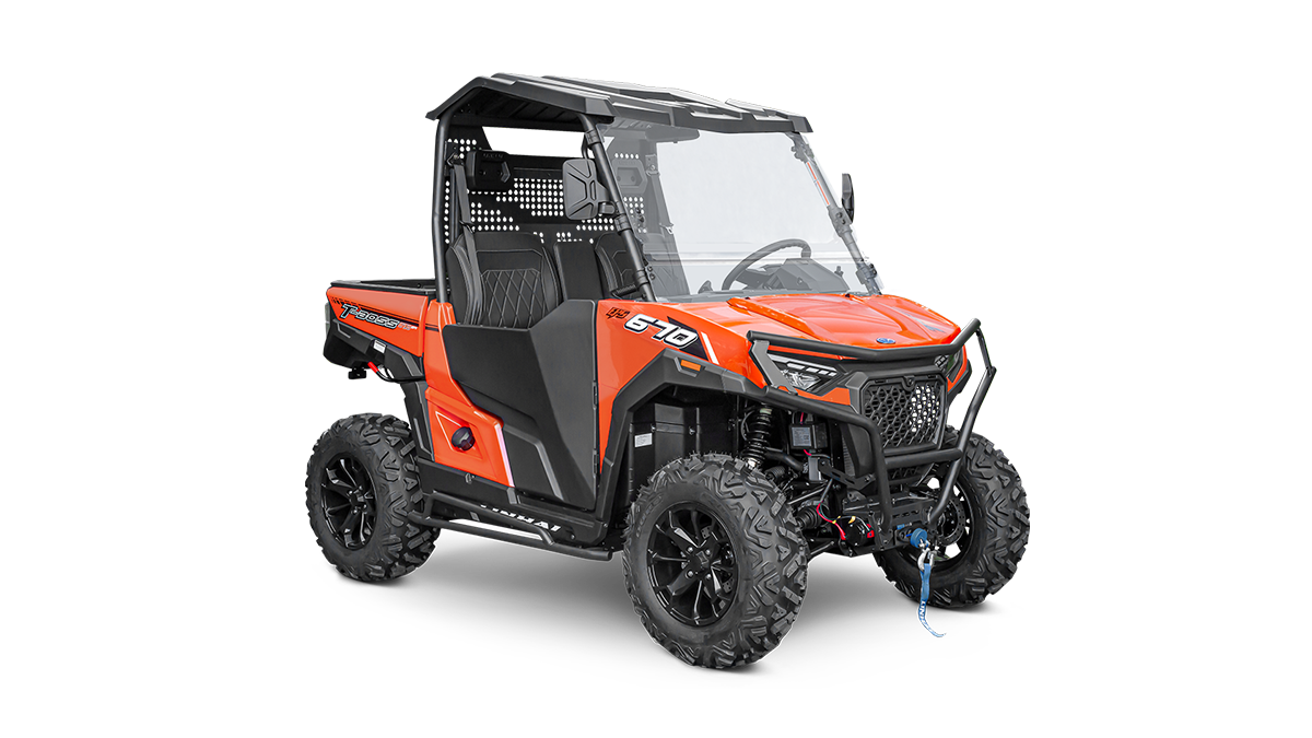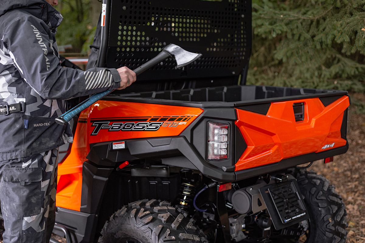 Sistemul de tracțiune 4x4, selectabil electronic, împreună cu posibilitatea blocării independente a diferențialului față și a celui spate, garantează tracțiune maximă. În combinație cu suspensia independentă, modelul T-Boss 670 EPS oferă o deplasare stabilă, confortabilă și sigură, chiar și în cele mai solicitante condiții.