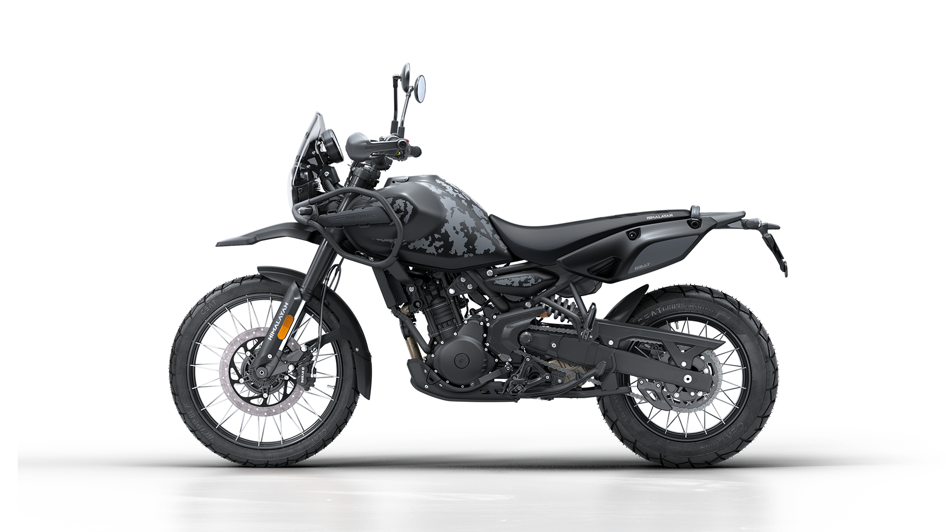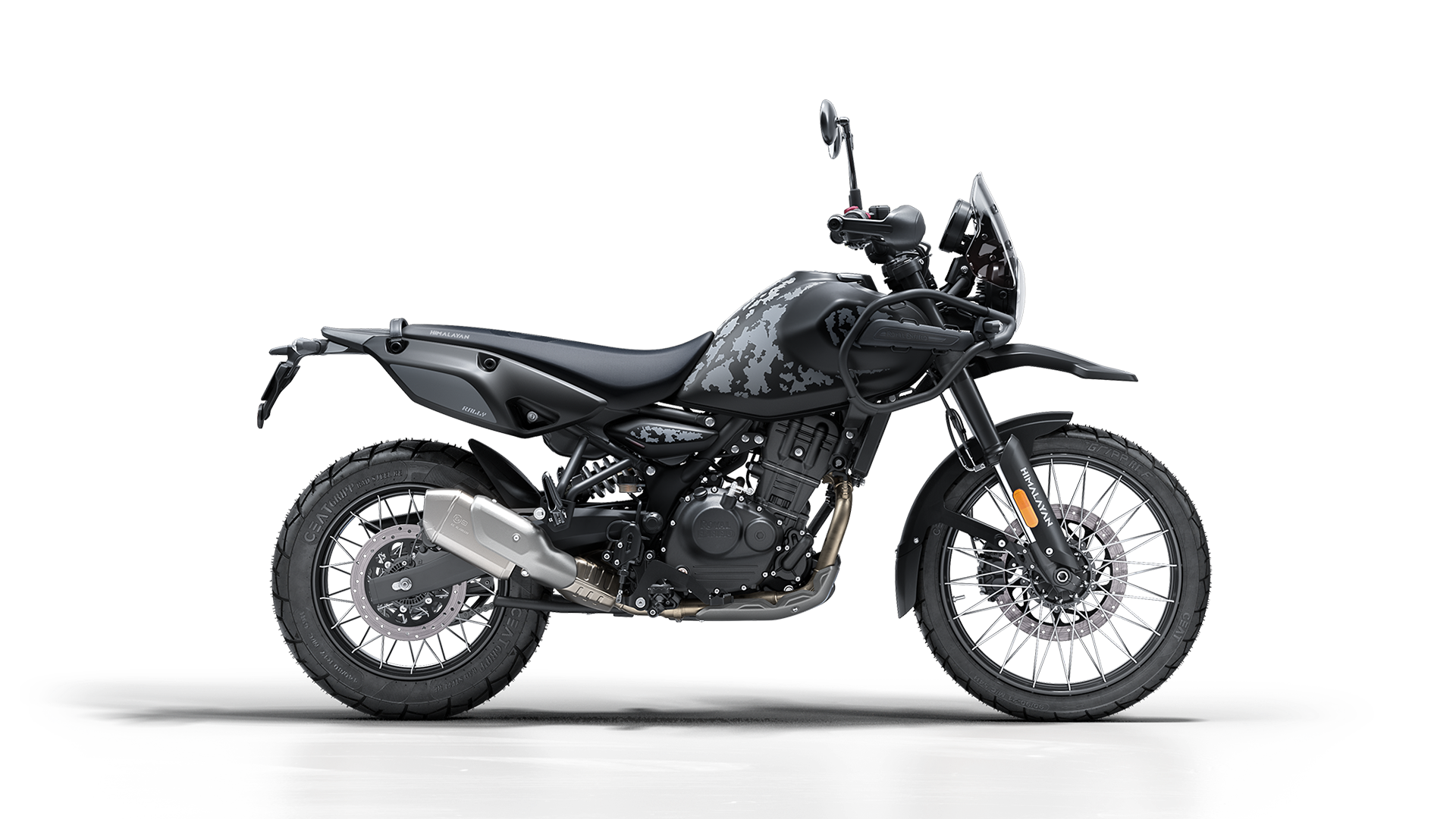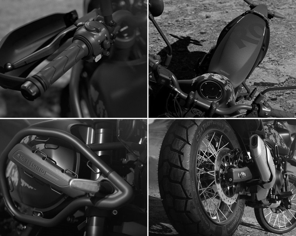 Unul dintre punctele forte ale Himalayan Rally este configurația complet echipată din fabrică: apărători de mâini Black Rally, șa Black Rally pentru confort pe distanțe lungi și apărătoare de noroi Rally pentru trasee accidentate.