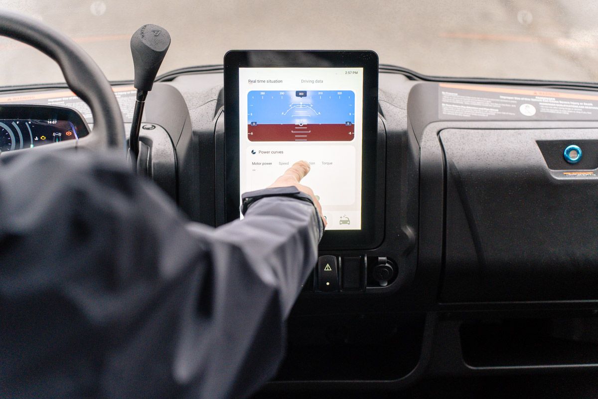 Bord digital multifuncțional, ecran tactil 10.4”, troliu electric 2041 kg, cârlig de remorcare omologat, volan reglabil, centuri de siguranță în 3 puncte, bară protecție față/spate, benă basculabilă, uși integrale, plafon, parbriz scurt din plexiglas, jante aluminiu 14” cu beadlock