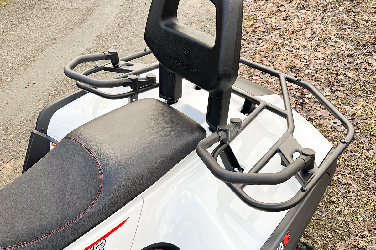 Troliu electric 1.134 kg, cârlig de remorcare omologat, apărători pentru mâini, bară de protecție față, scaun cu spătar și mânere de susținere pentru pasager