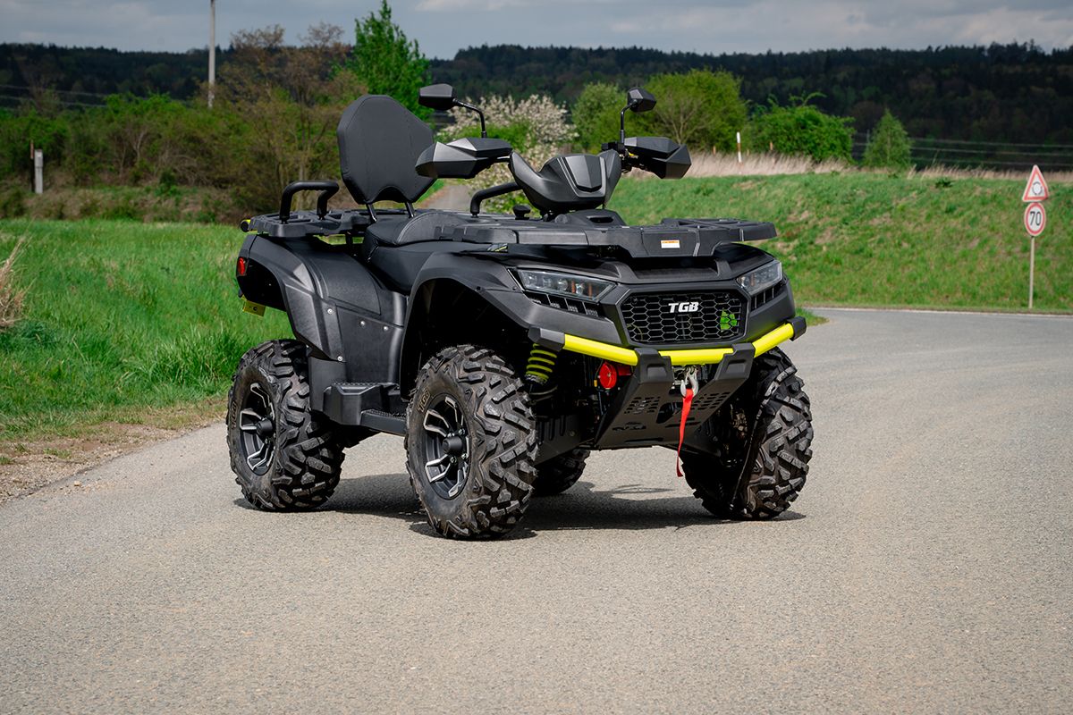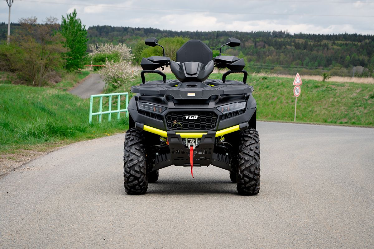 Designul modern este subliniat de farurile cu LED, iar șasiul extins are integrat scaunul pentru pasager. Ca și celelalte modele TGB din seria Blade, beneficiază de diferențial blocabil față și spate, pentru un control maxim indiferent de teren, un troliu rezistent de 1360 kg și o grilă față detașabilă, ce permite o curățare ușoară.